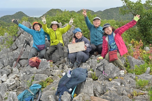 ▼ごつごつして座る場所もない山頂に到着です(^^♪